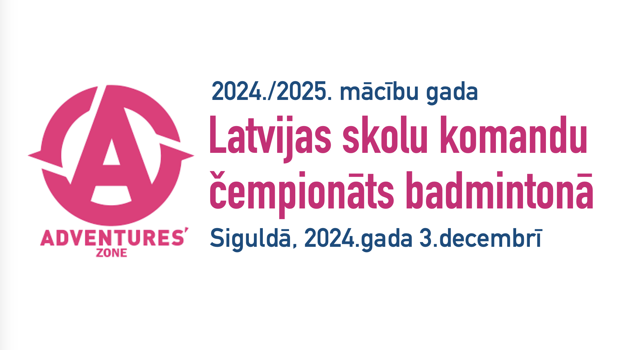 Skolas tiek aicinātas pieteikties uz Latvijas skolu komandu čempionātu badmintonā, kas norisināsies 3.decembrī Siguldas sporta centrā. Sacensības notiks “Badminton 100” stafetes formātā, noskaidrojot uzvarētājus sākumskolas, pamatskolas un vidusskolas vecuma grupās. Pieteikšanās termiņš ir 2024.gada 29.novembris.